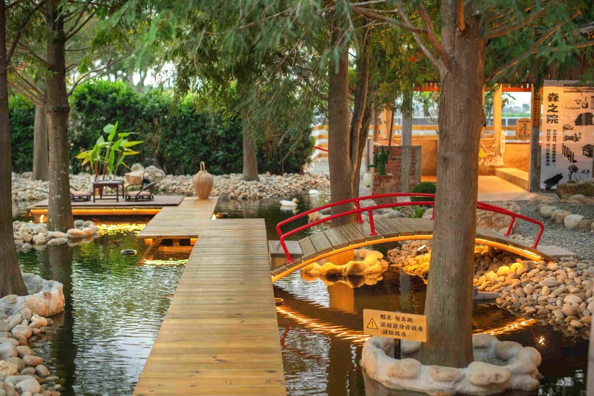 森之苑不是一般的甜點店,而是由虎珍堂用心修復近百年的三合院老宅,庭院植有落羽松、水池魚群悠游、棧道小徑等,讓人有種走入森林與歷史交會的感覺。森之院不只是景觀,還有自己的限定甜點:虎尾巴、誠興號地瓜豆腐冰,還能把雲林風味帶回家,如地瓜牛軋糖、紫薯流心餅等