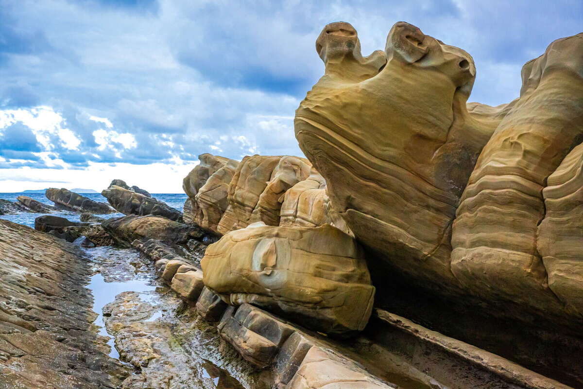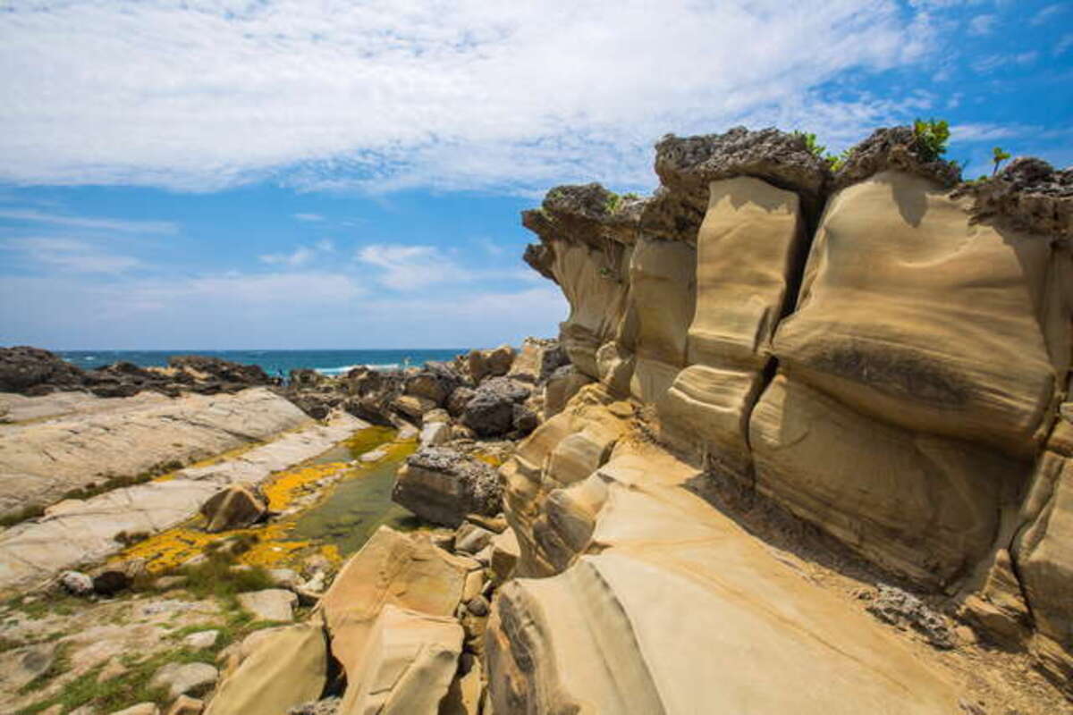 小野柳最大的魅力就是豐富多變的海蝕與地質景觀,天氣晴朗時可眺望遠方綠島,天與海的景色融合,是非常療癒的海景展望。