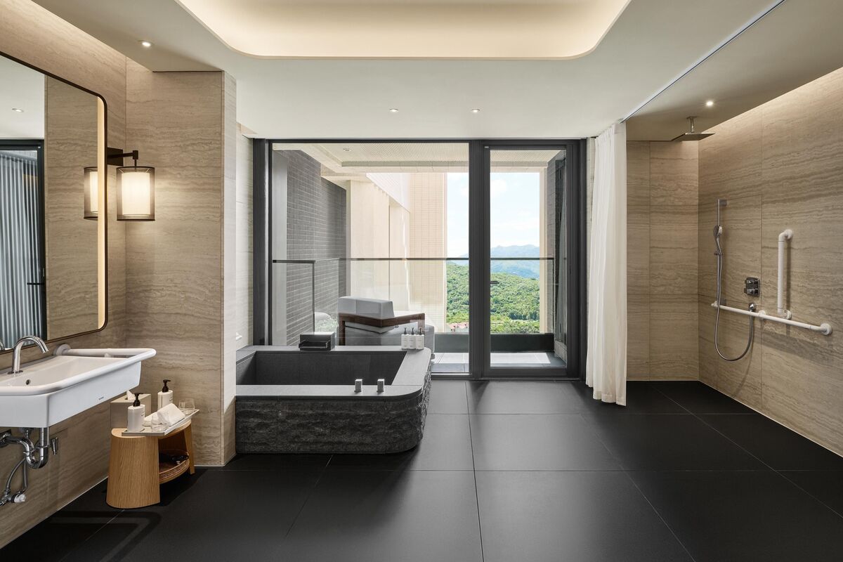 座落於新北金山北海岸,以溫泉度假為主軸,打造安靜舒適的休憩空間。館內以原木、石材與柔和光感呈現沉穩質感,步調從容,長輩也能輕鬆入住。客房多配備私人溫泉湯池,在房內即可享受溫潤泡湯時光;頂樓景觀泳池與戶外休憩區視野開闊,適合散步、放空、欣賞天色變化。是一處兼具放鬆與質感的北海岸住宿選擇。