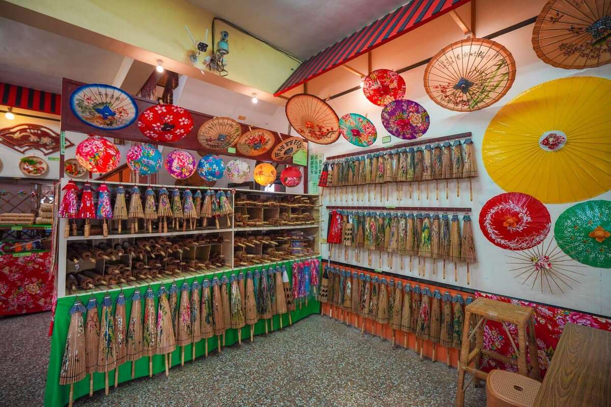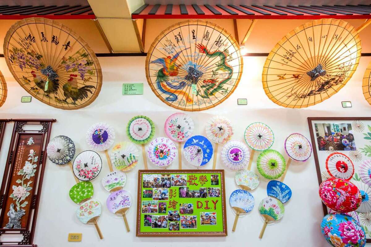 美濃民俗村建築結合菸樓與合院,濃縮了美濃的客家文化,園區內可欣賞及親手DIY製作傳統手藝油紙傘、陶藝手拉坯、磨製擂茶、品嘗古早味的清冰與客家美食。走進美濃民俗村,彷彿置身客家農村中,入口處左右邊各有牛車輪、石磨等古早農村造型的小水池,更添古色古香的氛圍,讓人流連忘返。圖片來源:高雄旅遊網