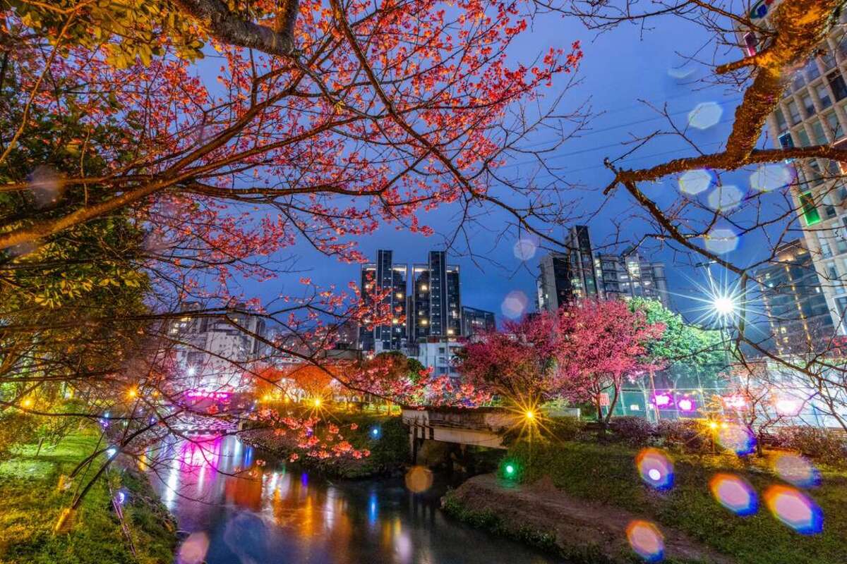 康誥坑溪櫻花大道位於新北市汐止,沿著溪畔步道種植成排櫻花,每逢花季,粉色花海映襯潺潺溪水,景色清新柔和。步道平坦好走,適合悠閒散步與拍照取景,是結合自然水景與城市日常的春日賞櫻秘境,深受在地居民與旅人喜愛。圖片來源:新北市觀光旅遊網