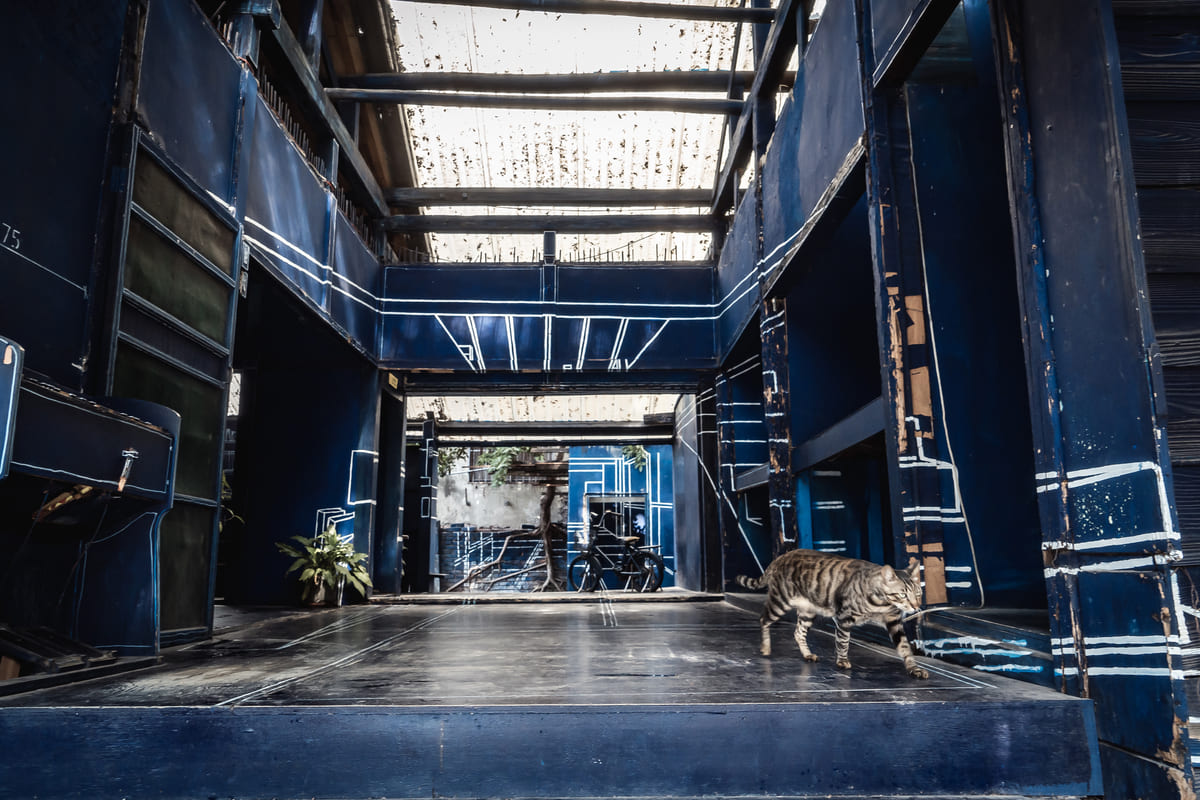 自從海安路上的藍晒圖消失之後,現在於前身為舊司法宿舍的區域內進化為3D的藍晒圖,夜晚打了燈,光彩奪目的白色線條在藍色的牆面上四射出來,加上一旁打著黃色燈光的老樹,成了台南夜間的亮點,面對著新光三越百貨台南新天地的藍晒圖文創園區,自從開幕後一直都是年輕族群聚集人潮滿滿的熱門景點,裡面的文創特色小店各有值得探訪之處,公共區域內的彩繪牆與藝術裝置更是園區內的拍照熱區,吸引著許多人在裡面流連忘返。