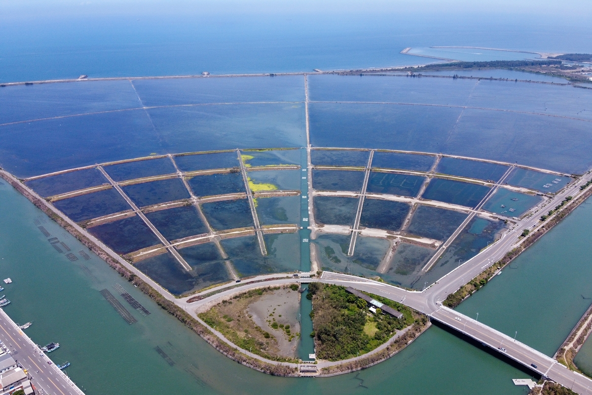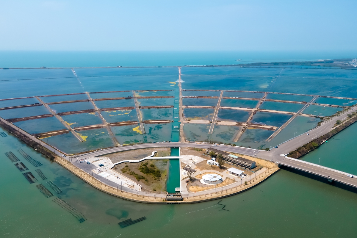 青鯤鯓扇形鹽田位在將軍區,屬於七股鹽場第一工區,在1977年由台鹽填平青鯤鯓沙洲與內海開闢而成的新鹽灘,2002年七股鹽場結束曬鹽後便逐漸荒廢,為台灣鹽業史上最年輕的鹽田。如今因空拍興起,扇形鹽田之美再現世人眼前,搭配白色巨大的裝置藝術-生命之樹、扇鹽地景園區,為廢棄鹽田帶來新的生命力。※圖片取自台南旅遊網
