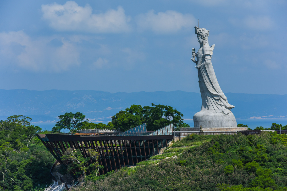 位於南竿的媽祖巨神像高約29.6公尺,面朝湛藍海域,象徵守護漁民與島上居民的平安。全世界最高的媽祖神像。近年來,「媽祖在馬祖」為馬祖主要的行銷口號,而媽祖巨神像的興建更代表馬祖人民對於媽祖信仰的虔誠,這座神像從提案到正式落成花了十年以上的時間,可見馬祖居民的決心。沿著步道而下,即可抵達祈福坑道,這條原為軍事用途的坑道,如今轉化為信眾寄託心願的聖地。坑道內燈光溫暖柔和,牆面懸掛著滿滿的祈願牌與彩帶,每一份心願都承載著祈求平安、健康、幸福的真摯情感。