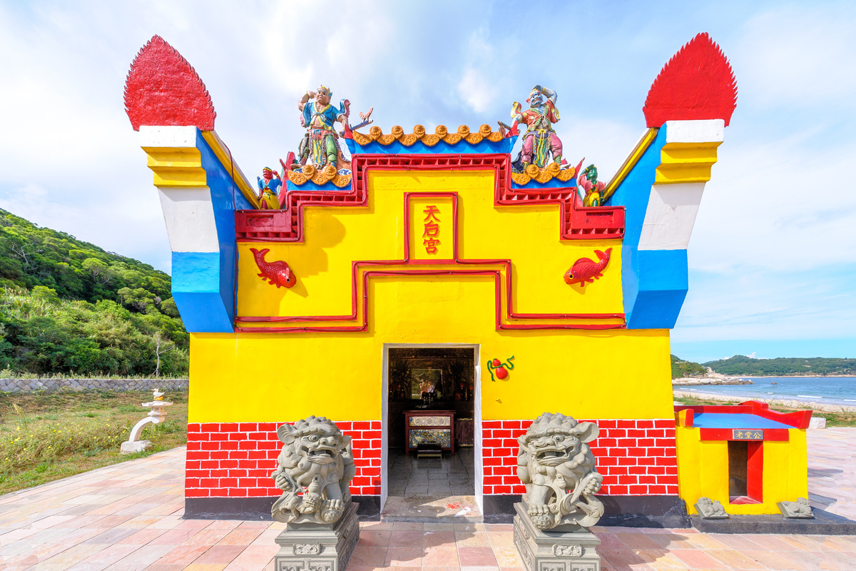 坂里沙灘往白沙港方向的不遠處,有間堪稱全世界最小、最迷你的媽祖天后宮,色彩豐富鮮艷的建築外觀常常吸引過路人目光,小巧多彩坂里天后宮麻雀雖小五臟俱全。