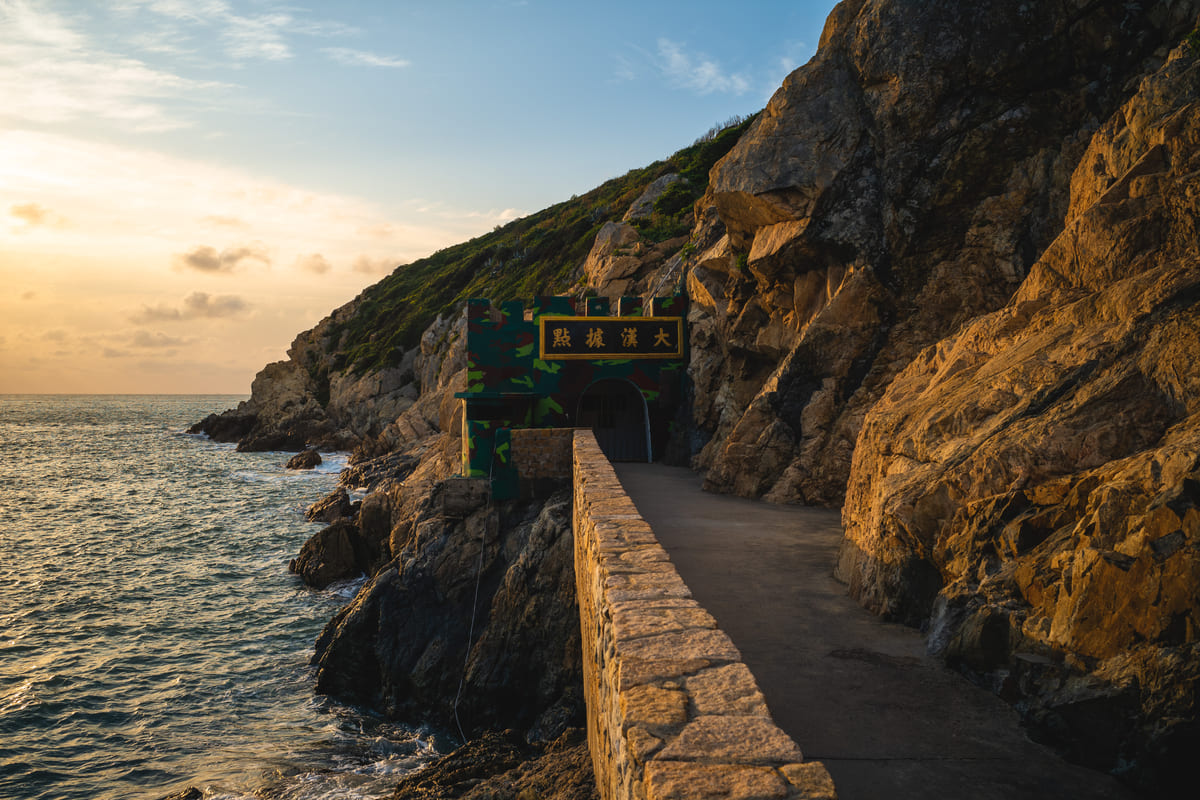 這個成語源於古代,意思是隨時準備迎接敵人,形容警戒、隨時待命的狀態。這正是馬祖在冷戰期間及兩岸對峙時期的寫照。當時,馬祖島作為軍事前沿島嶼,軍民皆需隨時做好防備,守衛家園。當台馬輪駛進馬祖福澳港,倚著船桅大紅色的四個「枕戈待旦」總會印入眼簾,巍巍聳立在南竿的福清嶺上。