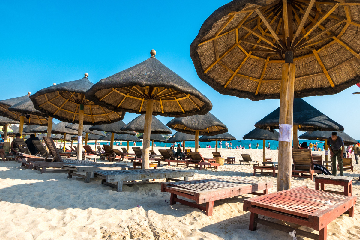 "水暖沙白灘平",是海南最著名的海灘之一、冬泳避寒勝地,也是三亞開發較早、較成熟的海濱度假區。大東海海灣與榆林港毗鄰,在兔尾嶺和鹿回頭兩個山頭中間,灣形宛如月牙,海面遼闊平靜,海水晶瑩碧藍,形成一幅白沙、陽光、碧水、沙灘、綠樹組成的美麗熱帶風光圖畫,這也使大東海斐聲海內外。