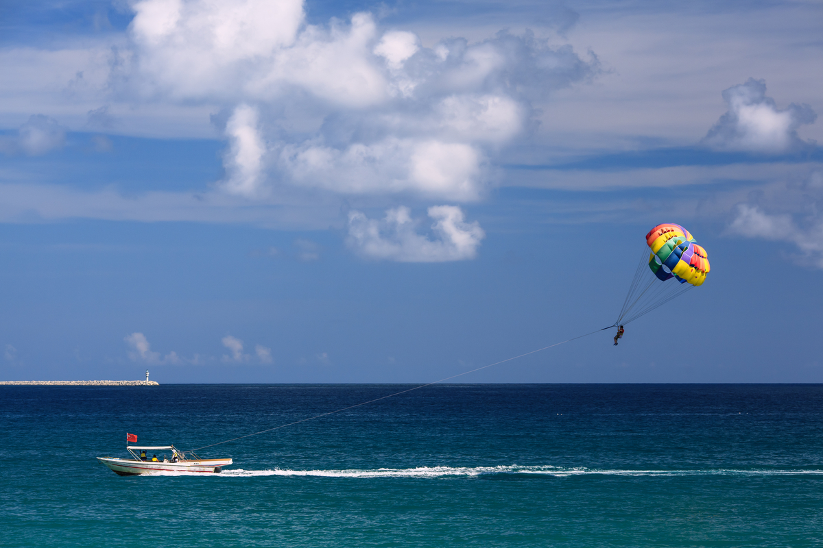 金色浪花閃耀陽光,碧海藍天的度假勝地