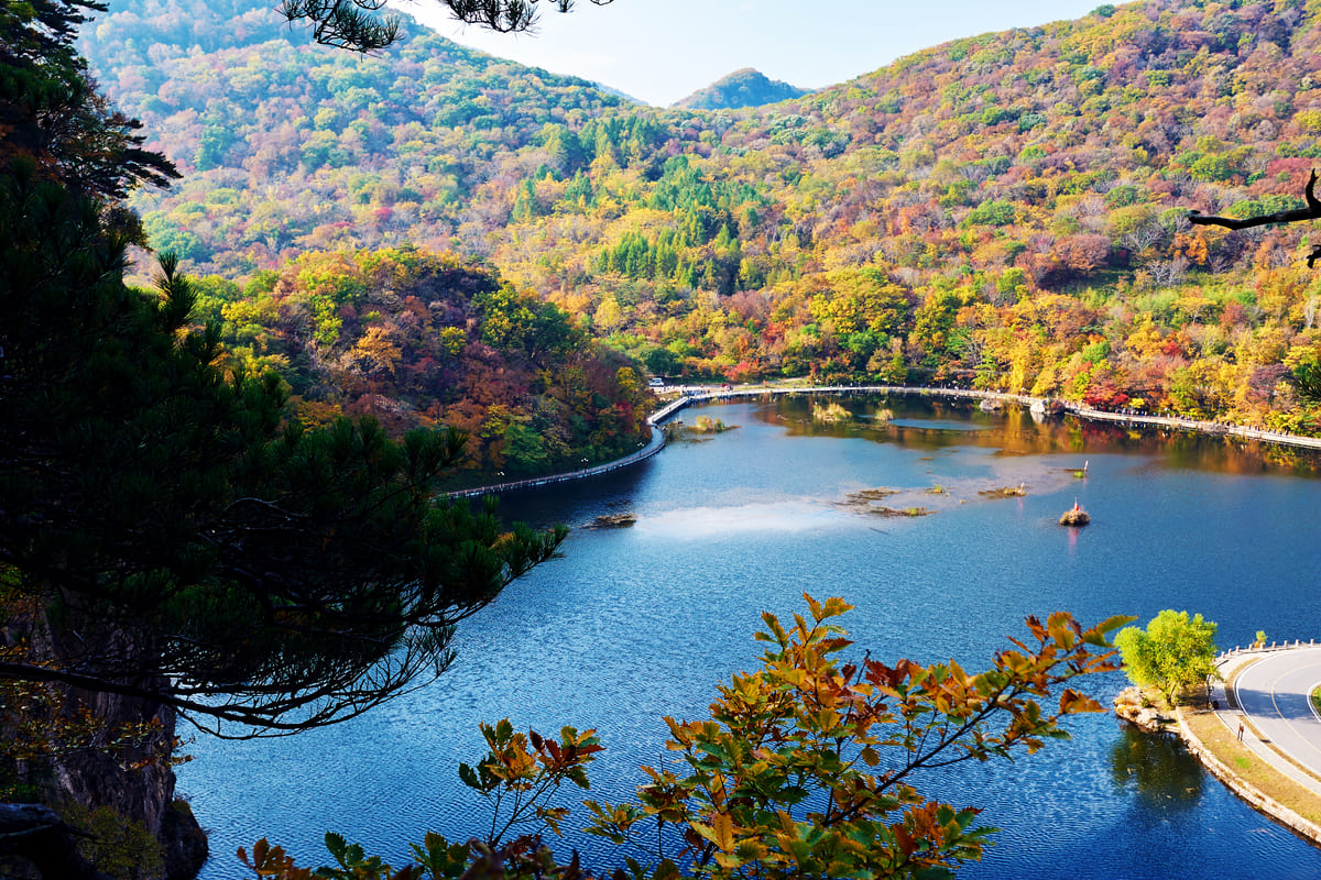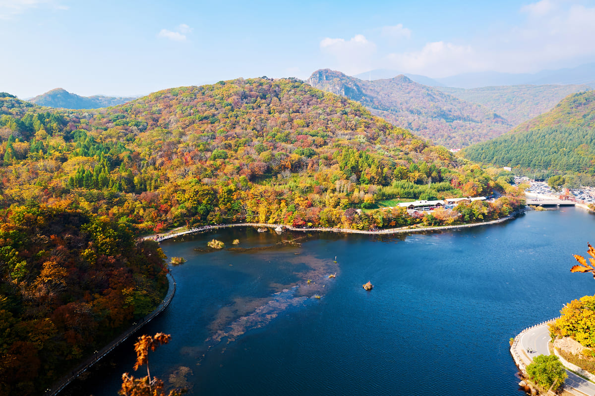 為新興旅遊小鎮,街區建築色彩繽紛、乾淨整齊,設有咖啡館與手作坊。夜晚燈光映照雪景,氛圍溫馨。這裡是長白山登山與休憩的最佳中途站,完美融合朝鮮族民俗與高山風情。
