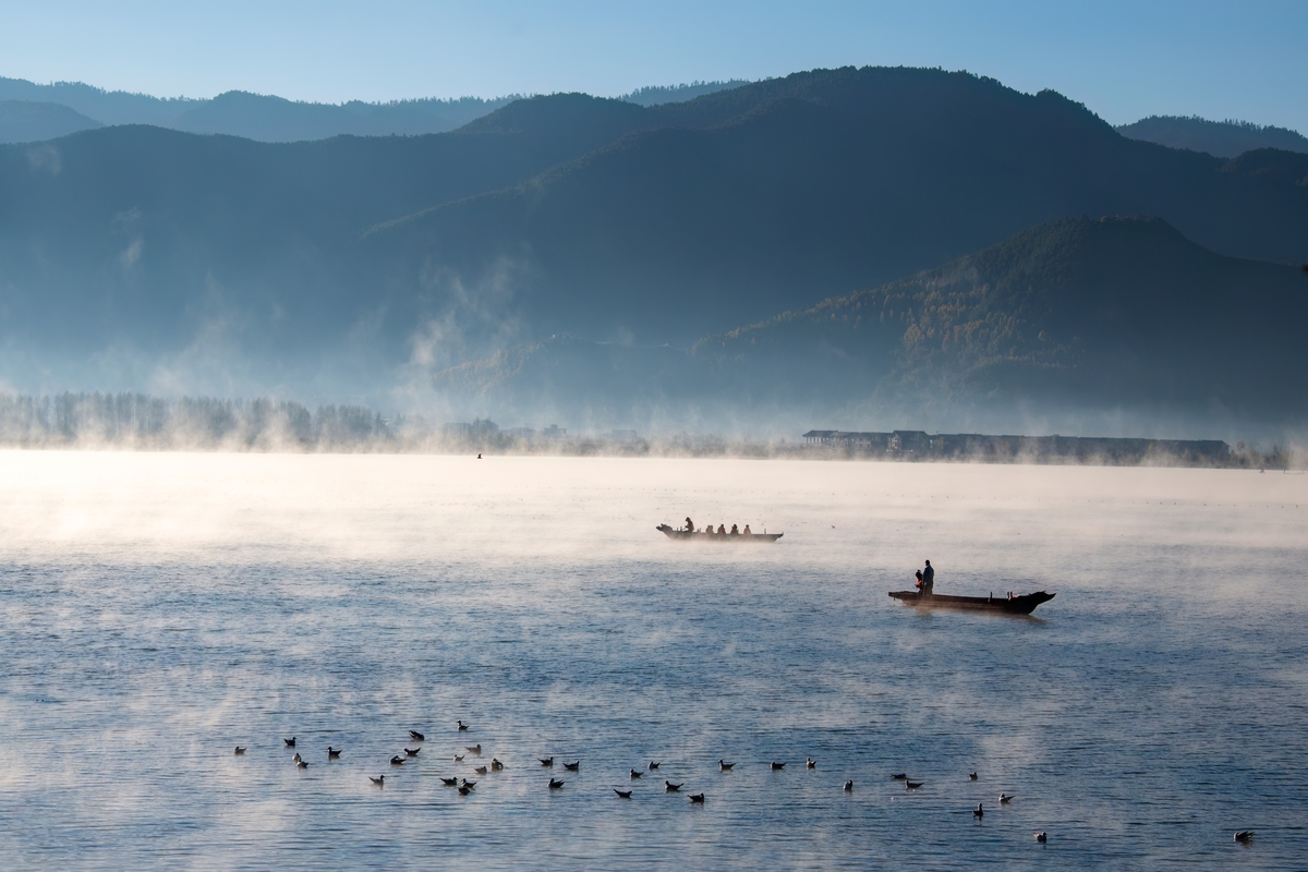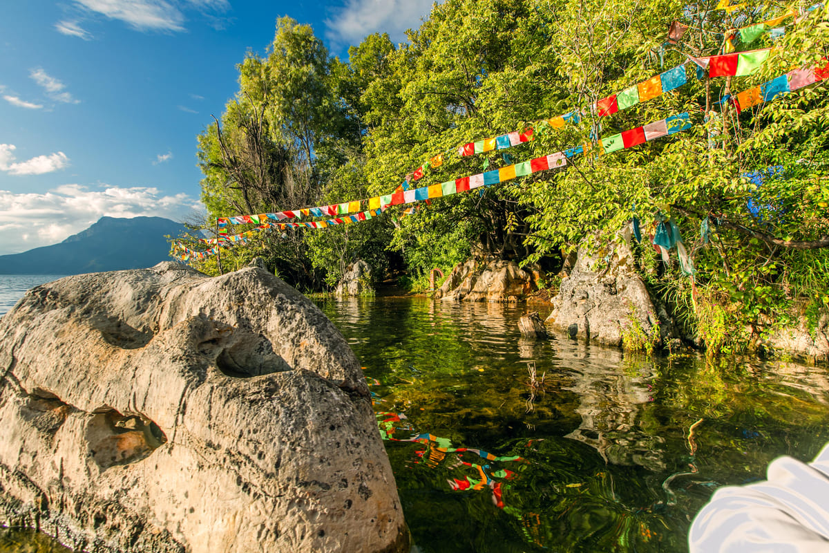 🚤 瀘沽湖 + 摩梭族文化:乘豬槽船遊湖、登裡格半島,體驗摩梭母系氏族與篝火鍋莊晚會的傳統民俗。