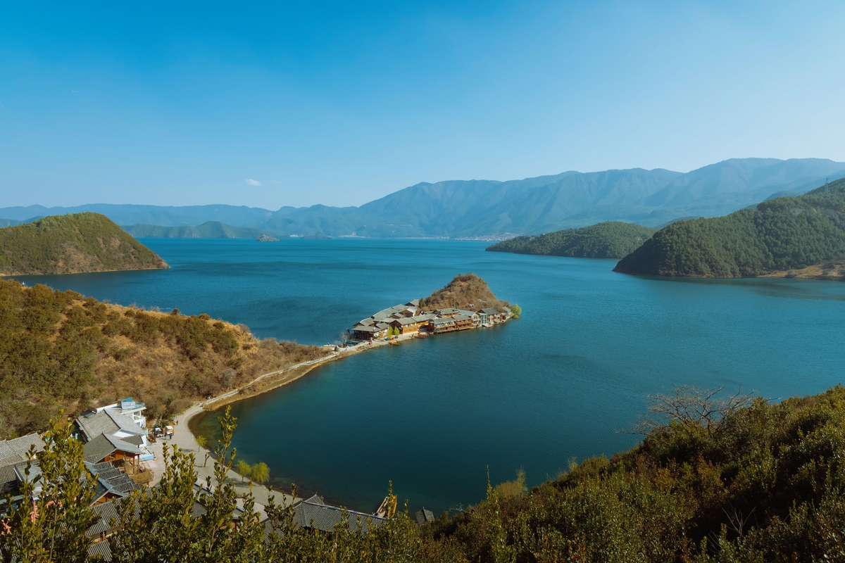 位於瀘沽湖湖域東岸,植被密佈,在此可一覽瀘沽湖全景。瀘沽湖四周崇山峻 嶺,一年有三個月以上的積雪期。森林資源豐富,山清水秀,空氣清新,景色迷人,瀘沽湖被當地