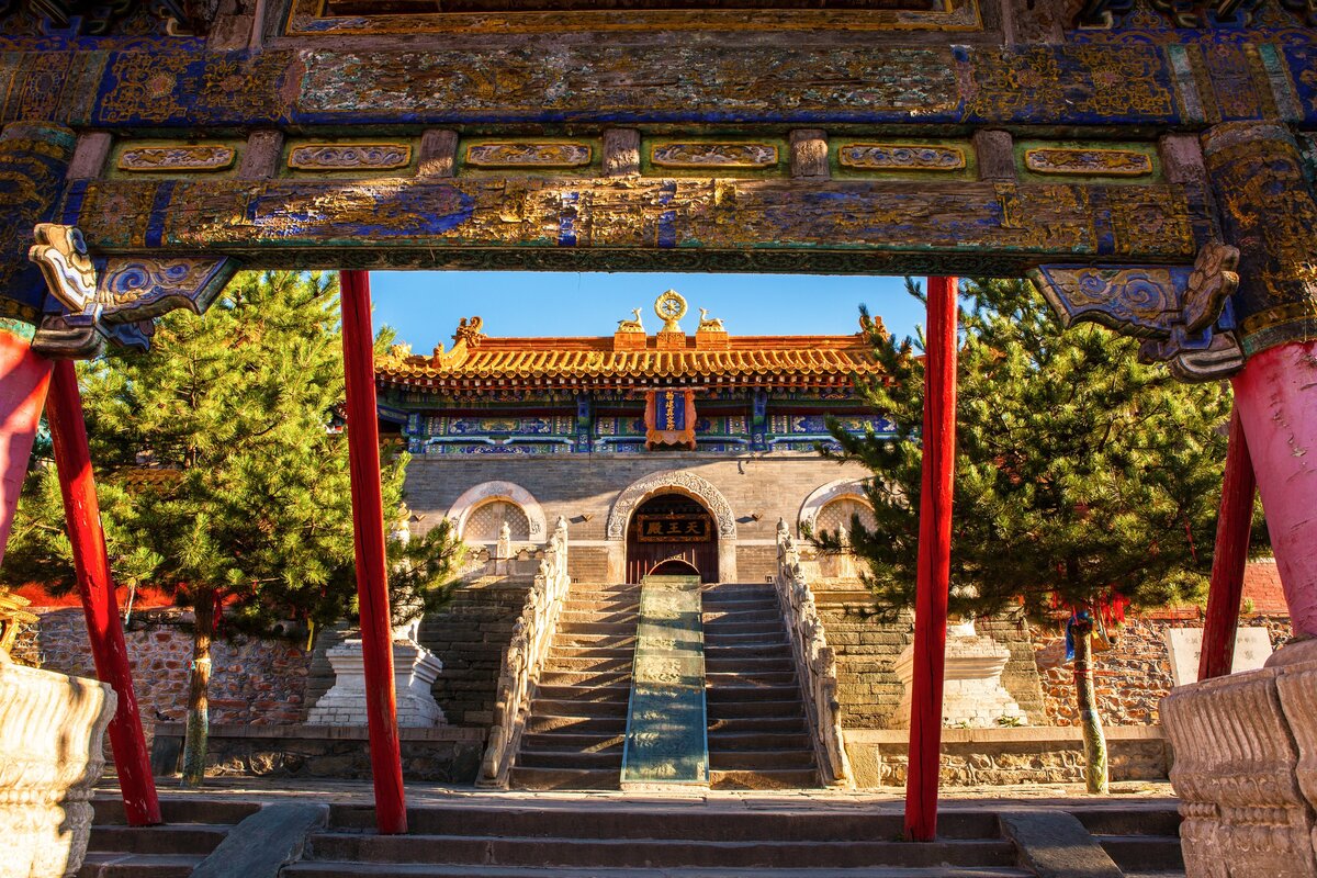 五臺山最高的黃教寺院,為清代重修的皇家寺廟,位於靈鷲峰之巔,視野遼闊。殿宇金碧輝煌,香煙繚繞,被譽為「黃教駐華第一寺」。登臨頂峰,可俯瞰整個台懷鎮的寺院群落,氣勢磅礡,是信眾朝聖祈福的首選之地。