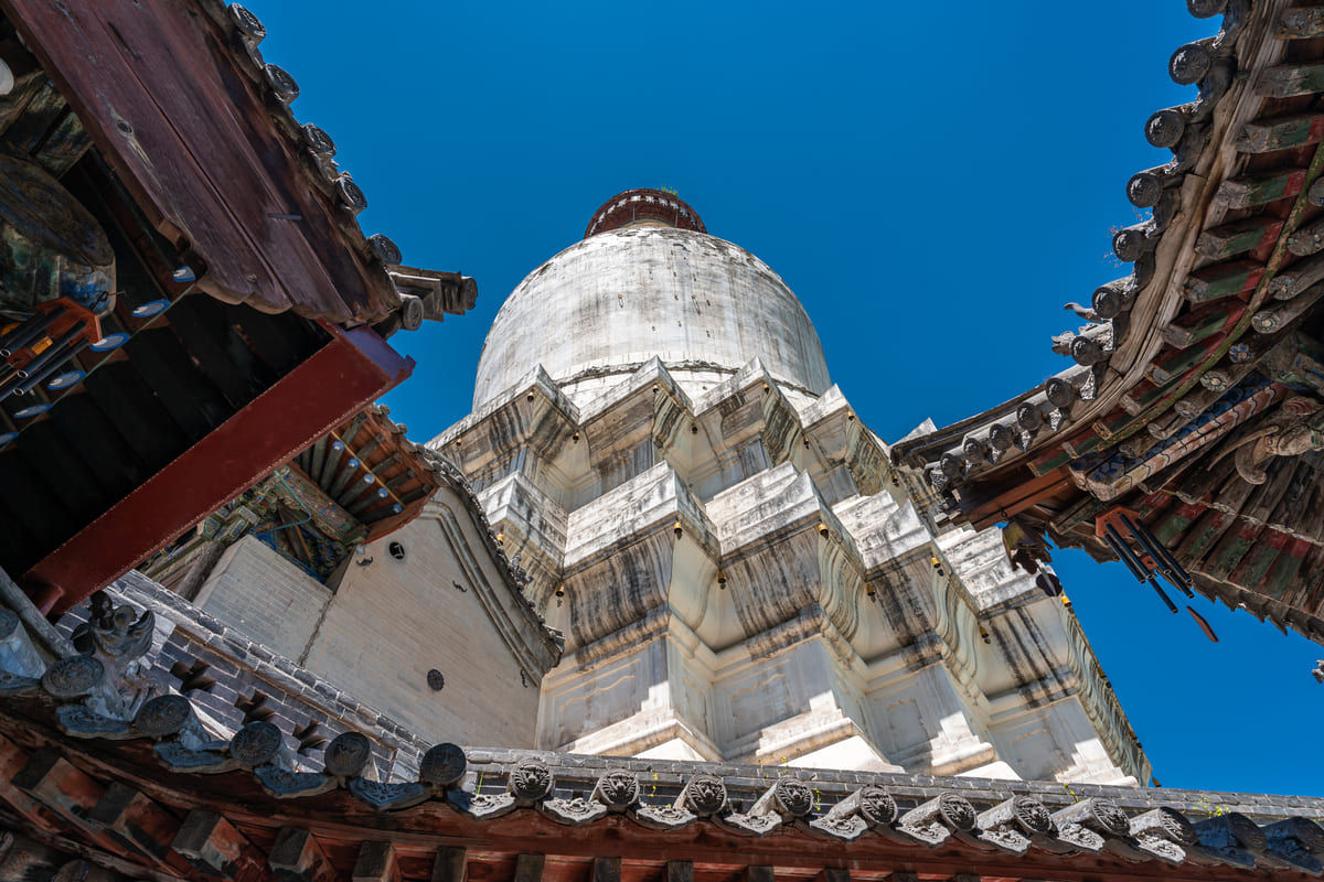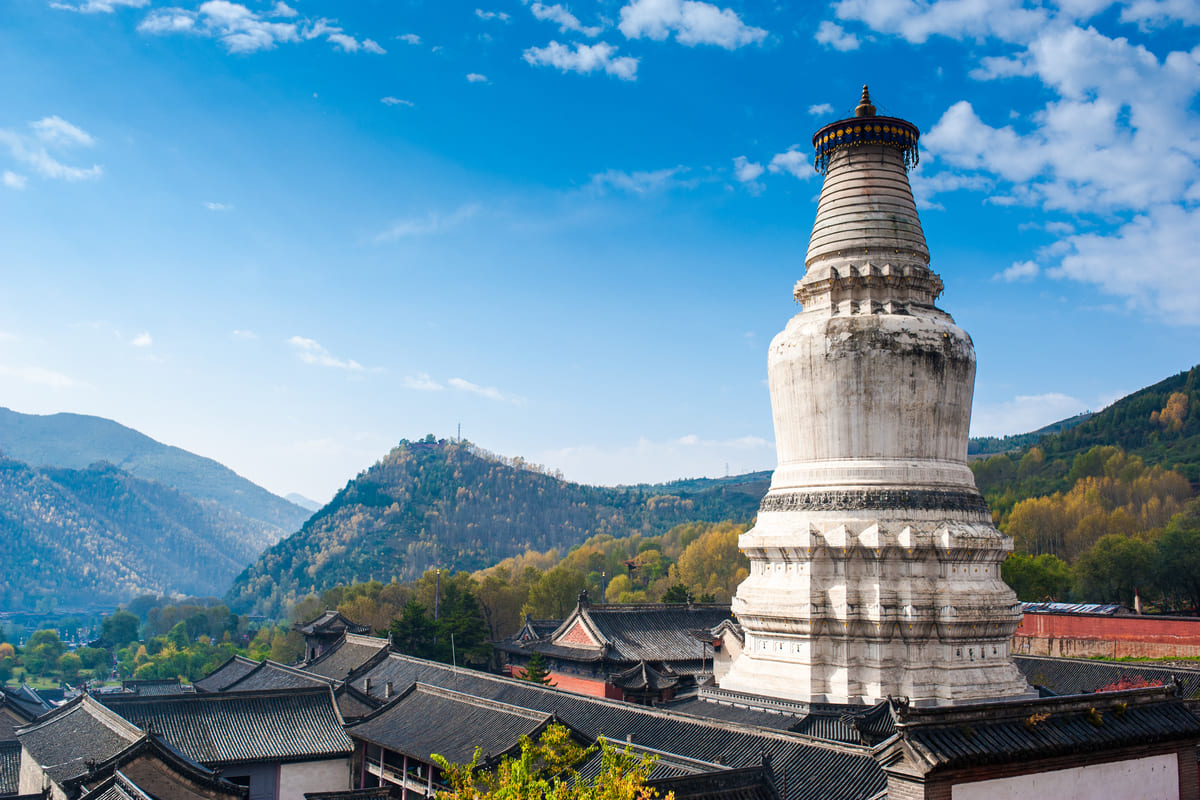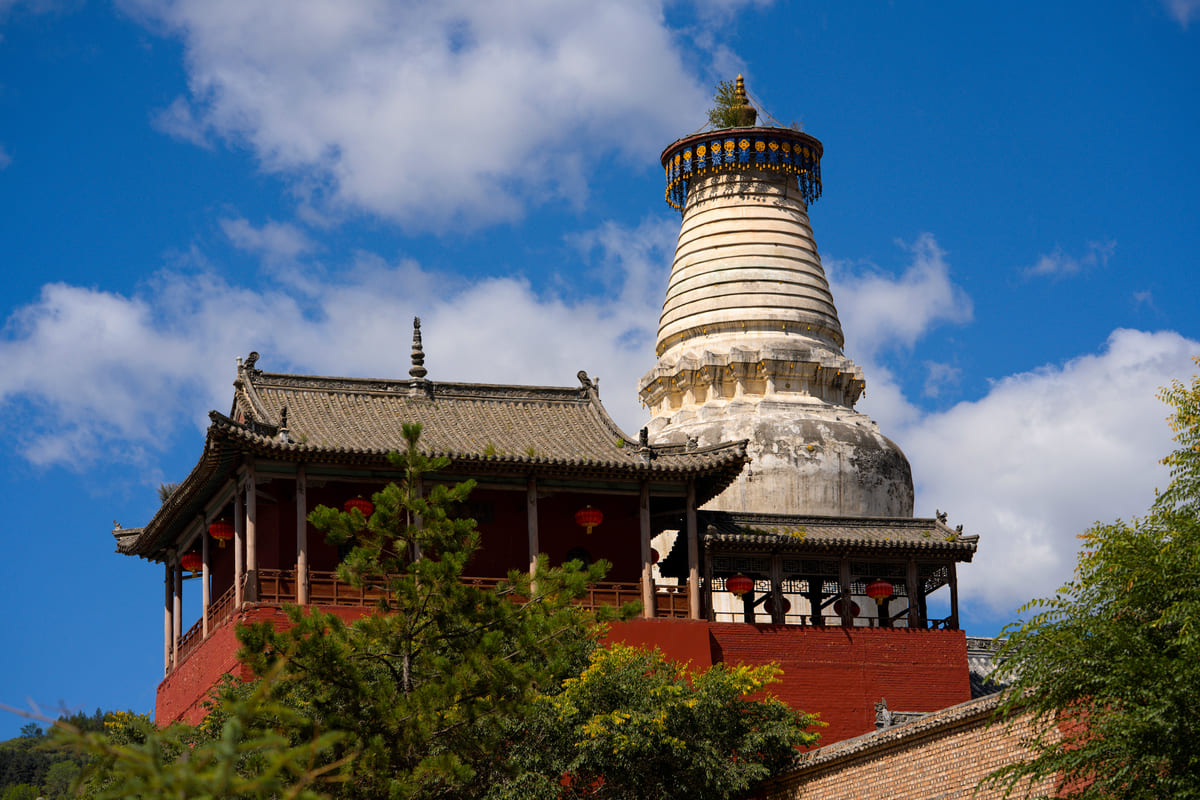 以寺中高達五十多公尺的釋迦牟尼白塔聞名,被稱為「五臺山標誌」。塔身潔白如玉,遠遠即可望見,是五臺山最具象徵性的地標。每年吸引無數信眾繞塔祈願,象徵消業積福、福慧雙修。