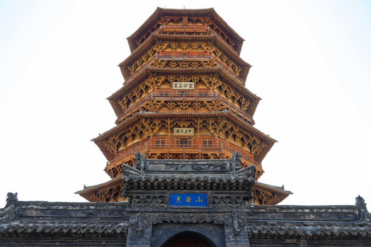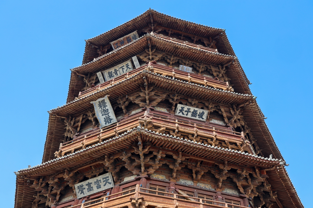 全名釋迦塔,為世界上最高、最古老的純木結構建築,高67.31公尺,已有近千年歷史,無釘無鉚、全靠榫卯結構支撐。塔內供奉釋迦牟尼佛,結構嚴謹堅固,歷經地震仍屹立不搖,被譽為「世界三大奇塔」之一。