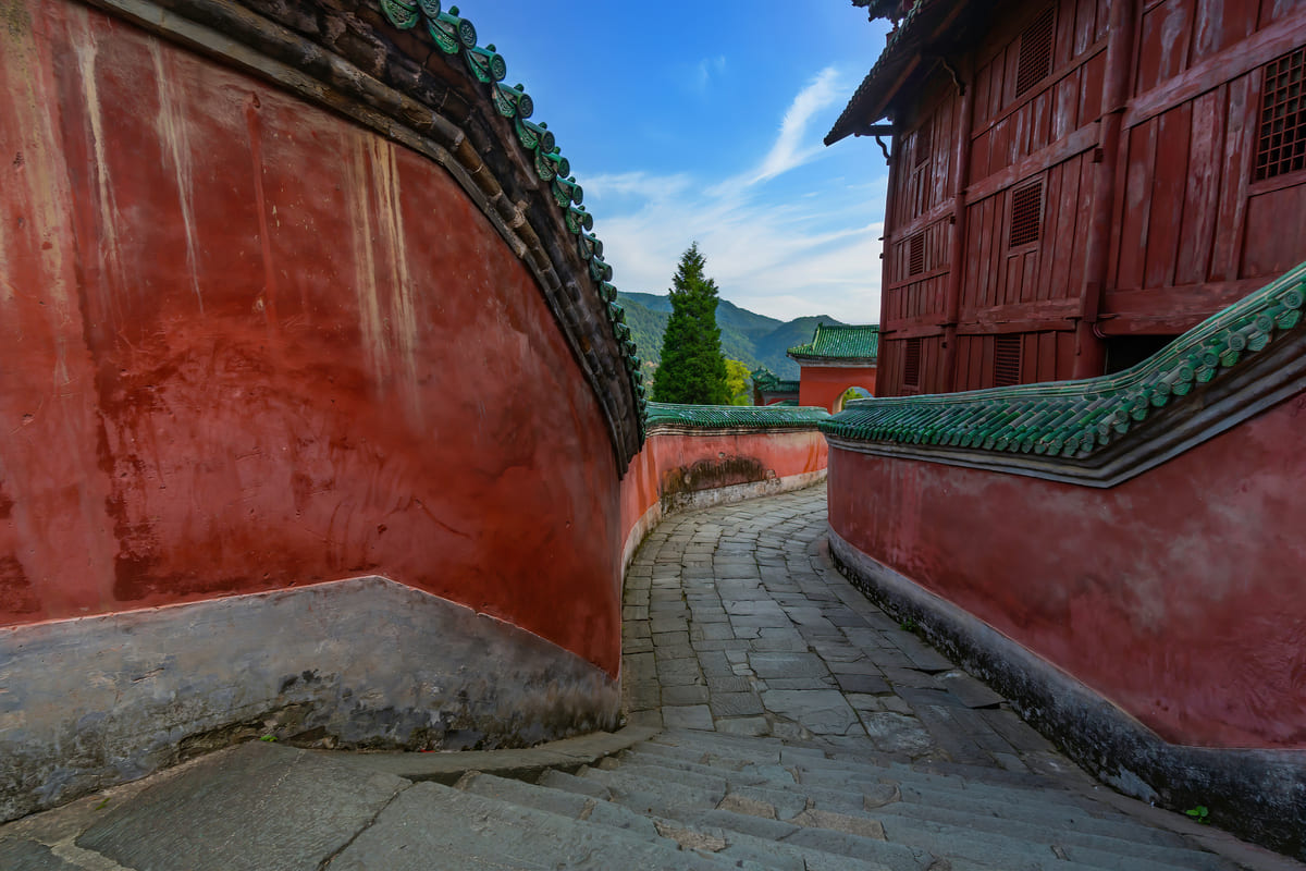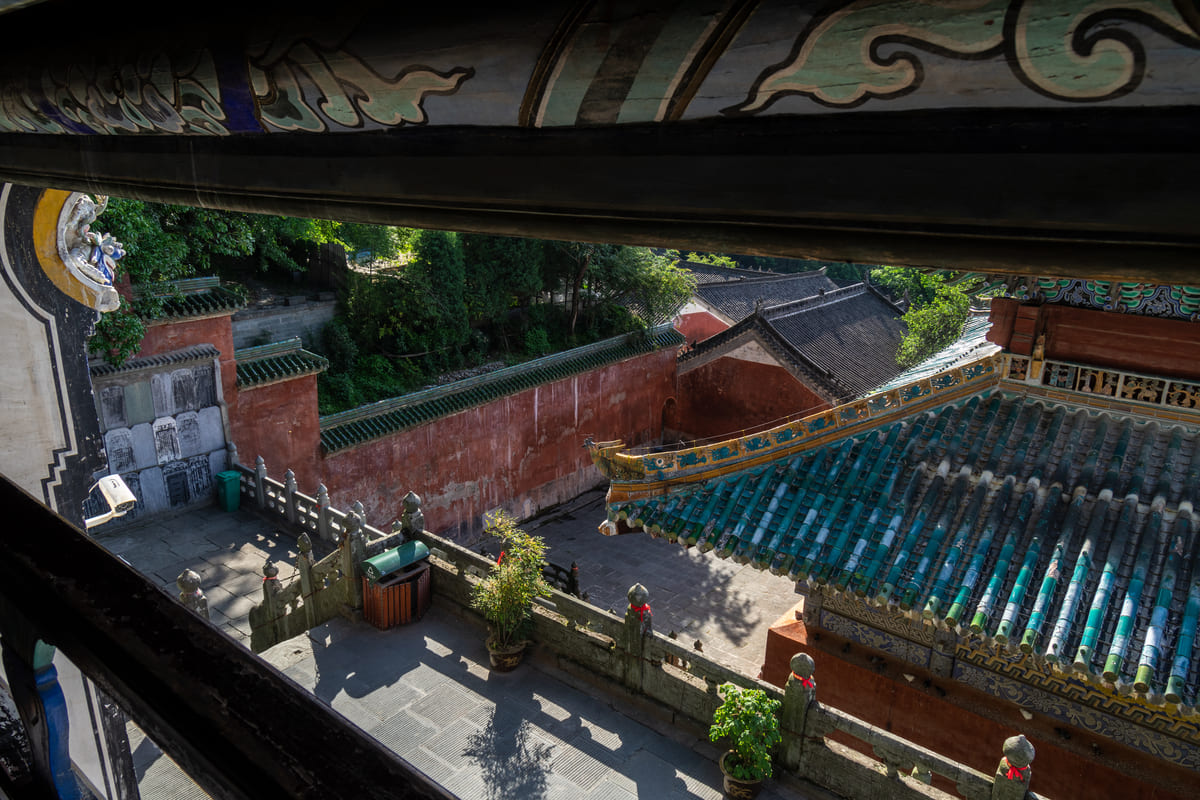 又名復真觀,因少年真武在此修行而得名,裡頭就有個太子讀書殿,就是學子們祈求金榜題名的聖殿,供奉著真武年少時的神像,背後有真武大帝初到武當山的繪圖,其中還有烏鴉,一般視烏鴉為不吉利,但因烏鴉曾為真武引路,在武當山被奉為神鳥,聽到烏鴉的叫聲就是吉祥之兆。太子坡有「一里四道門,九曲黃河牆,一柱十二樑,十里桂花香」四大奇景,紅墻翠瓦夾著蜿蜒石階,猶如波浪起伏,稱為「九曲黃河牆」,走在其中,能聽見自己步伐的回音。五雲樓則是現存武當山最高的木構建築,古代依山勢變化而建的五層木構高樓,靠著一根柱子交疊十二根樑,撐住整棟房子,讓人嘖嘖稱奇!