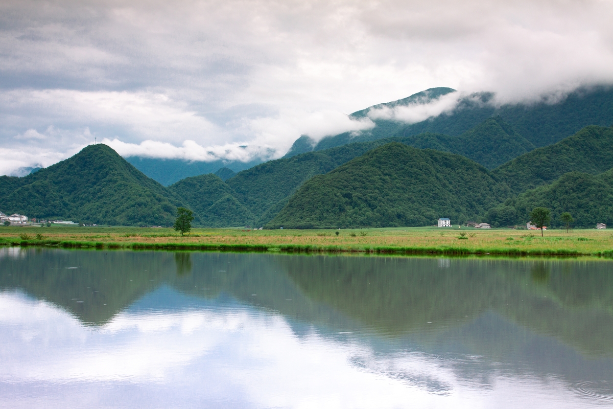 大九湖位於渝鄂交界處,大九湖濕地公園總面積3萬畝,海拔1700米,園內共分佈有高等植物141科366屬964種(含變種及栽培種),其中國家重點保護植物共5種,國家珍貴樹種3種,苔蘚植物13科18種。面積3萬多畝,海拔1700米,面積36平方公里,南北長約15公里,東西寬約3公里,中間是一抹17平方公里的平川,四周高山重圍,在"抬頭見高山,地無三尺平"的神農架群山之中,深藏著這樣的處女平地極為少見。
