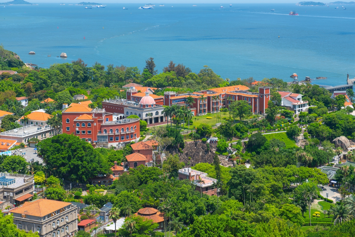 曾被中國國家地理雜誌評為:『中國最美的城區』第一名。島上崗巒起伏濃林茂密,四邊臨海,沙灘、奇石自然景觀如畫,又因為不允許機動車輛上島,環境特別清幽,素以海上花園、鋼琴之島的美稱享譽中外。鼓浪嶼既為美麗的海岸風景區,又有悠閒的咖啡度假風情、各式新奇知名的美食,鼓浪嶼的玩法值得您自己來探索創造!